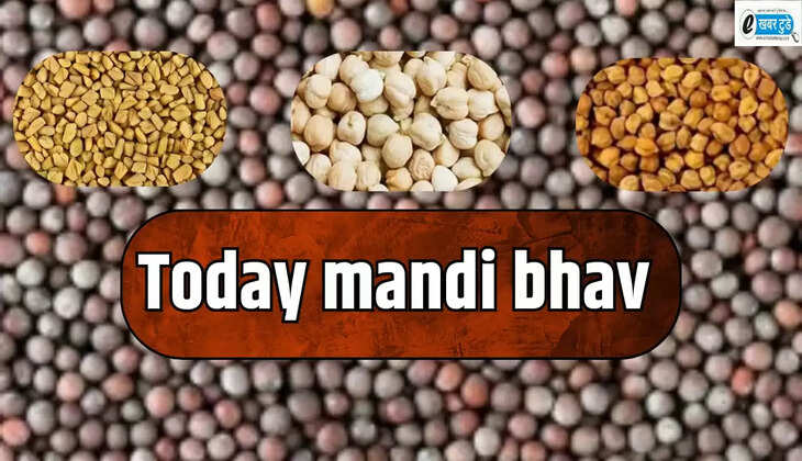 गेहूं 2400 से 3050 जी 2250 से 2380 मक्का 2020 से 2150 सोयाबीन 3850 से 4425 रायडा 5400 से 5950 मूंगफली 3800 से 5240 अलसी 7050 से 7400 चना 4900 से 5600 डॉलर 7500 से 9100 उड़द 5000 से 6800 मसूर 5900 से 6280 पोस्तदाना 86000 से 115000 टिनोपाल 140000 मैथी 4460 से 6300 धनिया 6000 से 7400 अजवाइन 8500 से 14500 इसबगोल 10000 से 12400 कलौंजी 18000 से 20600 असगंध 13500 से 31500 लहसुन 3000 से 9200 बॉक्स 11100 प्याज 200 से 1150 रुपए।